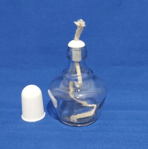 Fabricada en Vidrio. Consta de dos partes, la base y la tapa.