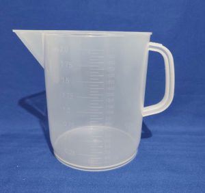 Fabricado en polipropileno. Para contener o traspasar líquidos, con pico para que el vertido sea eficiente y no haya derrames. Graduación en azul.